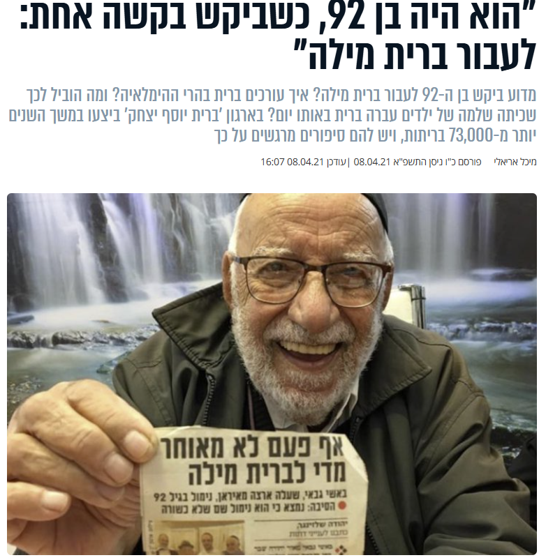להמשך קריאה"הוא היה בן 92, כשביקש בקשה אחת: לעבור ברית מילה"