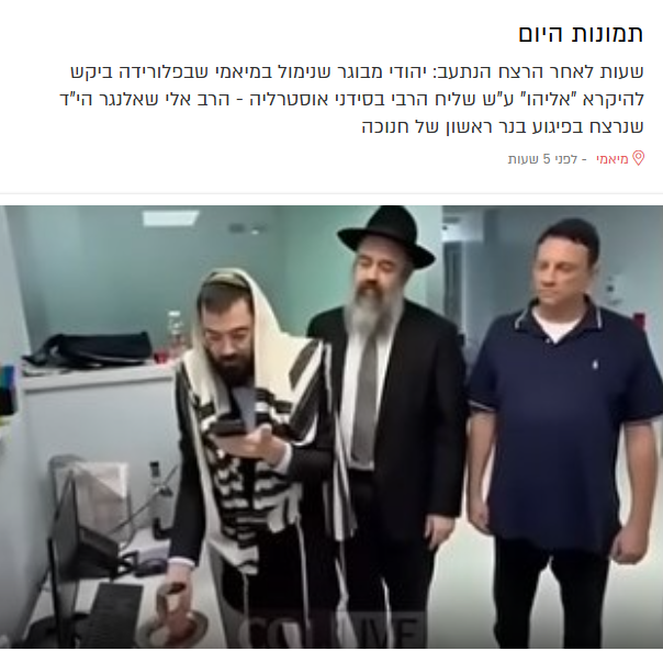 שעות לאחר הרצח הנתעב: יהודי מבוגר שנימול במיאמי שבפלורידה ביקש להיקרא "אליהו" ע"ש שליח הרבי בסידני אוסטרליה – הרב אלי שאלנגר הי"ד שנרצח בפיגוע בנר ראשון של חנוכה